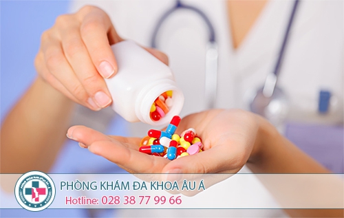 + Tùy theo bệnh lý cụ thể mà mỗi bệnh nhân sẽ được kê những toa thuốc riêng biệt, người bệnh có thể sử dụng thuốc kháng sinh, dạng thuốc uống và thuốc bôi. Các loại thuốc bôi có tác dụng làm giảm các triệu chứng bên ngoài của bệnh, còn các loại thuốc uống chủ yếu là tầm soát sự phát triển của mầm bệnh.