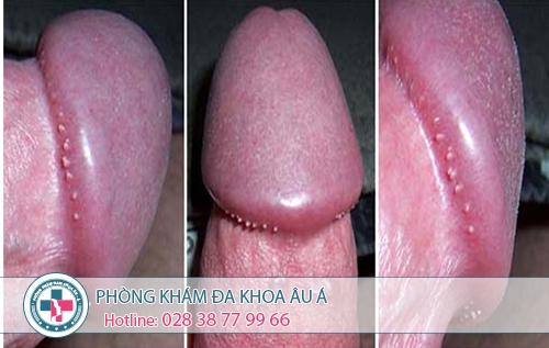 Nổi mụn nhỏ không đau đớn + xếp thành từng hàng => Chuỗi hạt ngọc dương vật