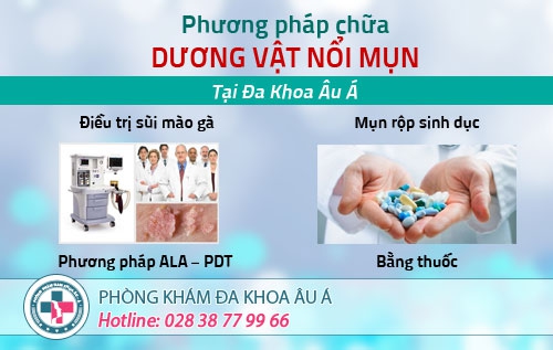 Tình trạng dương vật nổi mụn là biểu hiện sự bất thường của cơ thể và hiện tại Đa Khoa Âu Á đã điều trị các chứng bệnh xã hội gây ra tình trạng dương vật nổi mụn kể trên bằng phương pháp tiên tiến nhất và mang lại sự an toàn, hiệu quả cao và tiết kiệm chi phí cho nhiều người bệnh. Đồng thời, với những phương pháp áp dụng không gây ra tác dụng phụ, không ảnh hưởng chức năng sinh lý và không lo sợ bệnh quay trở lại.